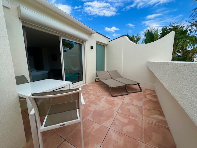 Le 226C est situé au 1er étage avec une terrasse privée et une vue imprenable sur le jacuzzi, la piscine, l'Eden bar et la mer. La terrasse bénéficie d'un ensoleillement du matin jusqu'au soir.